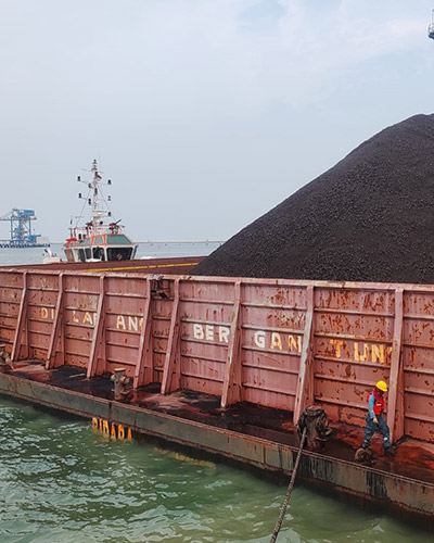Persiapan keberangkatan kapal tongkang ke kalimantan